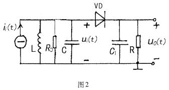 28.(8分)图2 检波电路中,输入回路谐振频率fo=1MHz,回路本身谐振电阻R0=20kΩ,C=100pF,检波负载R=10kΩ,C1=0.01μF,二极管VD为理想二极管.